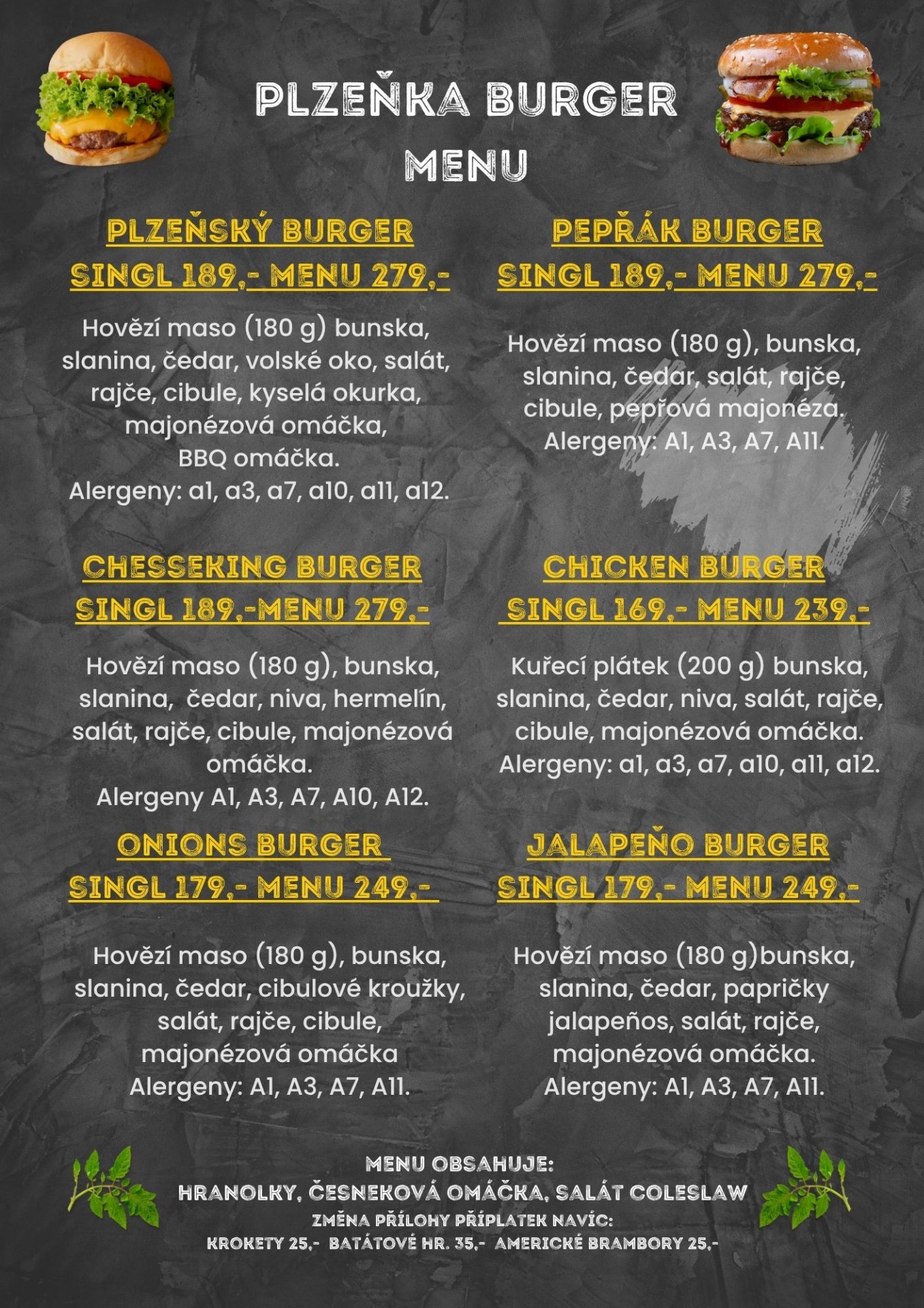 Hamburgery z Plzeňky nabízejí poctivé, šťavnaté burgery připravované z kvalitních surovin a čerstvého pečiva. Každý burger je sestaven tak, aby vynikla chuť masa, omáček i zeleniny, a stal se tak ideální volbou pro rychlý oběd nebo pohodovou večeři.