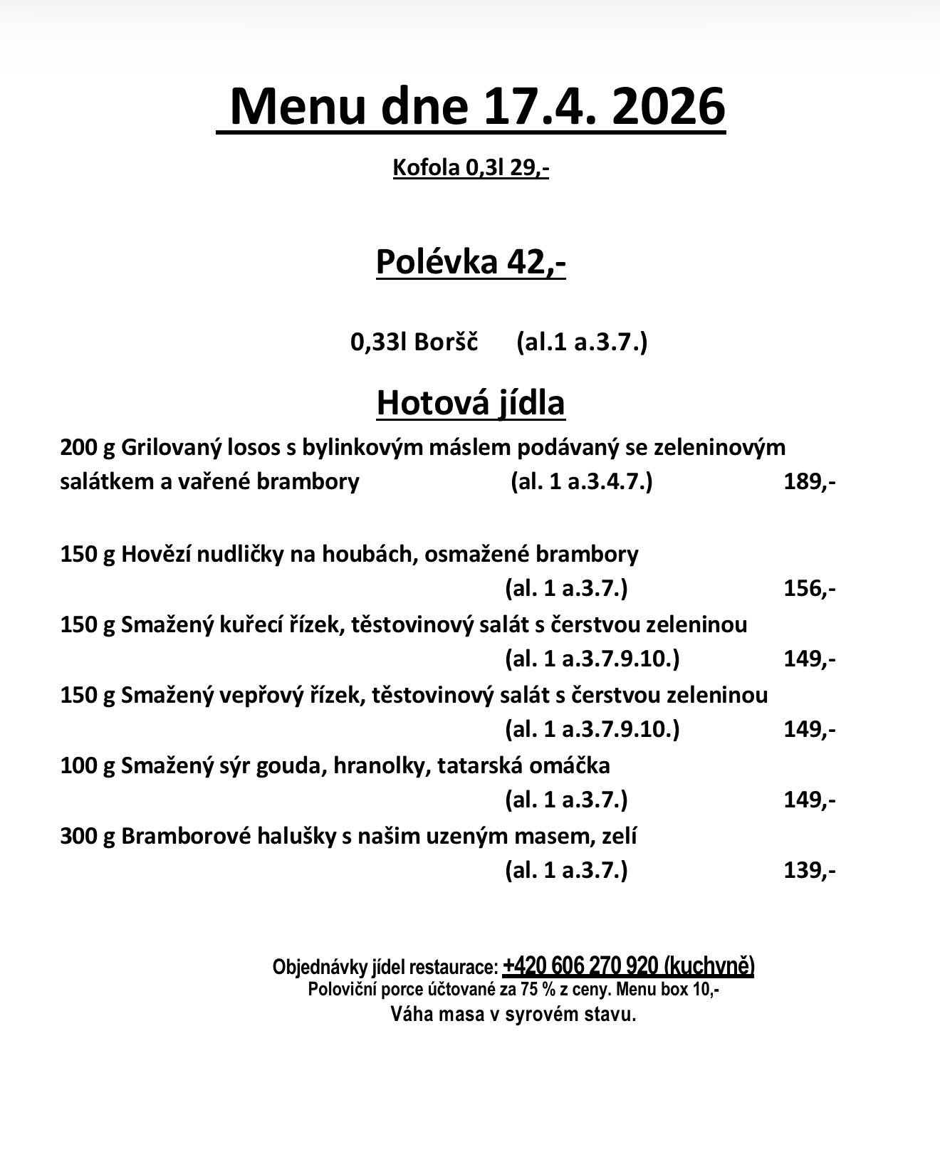Další informace o nabídce a službách lze doplnit v sekci O nás nebo v přehledu aktuálního menu.